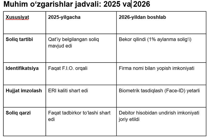 2026-yil 1-yanvardan YaTTlar uchun qat’iy belgilangan soliq tartibi bekor qilingan. Endilikda: