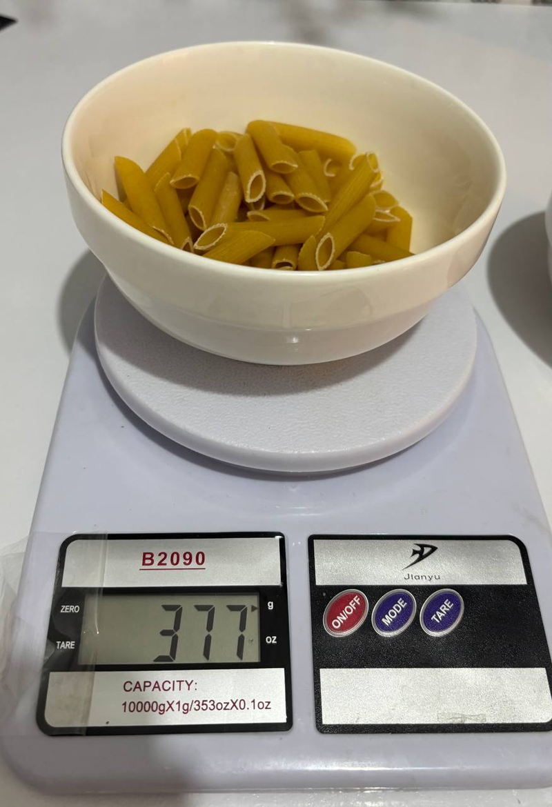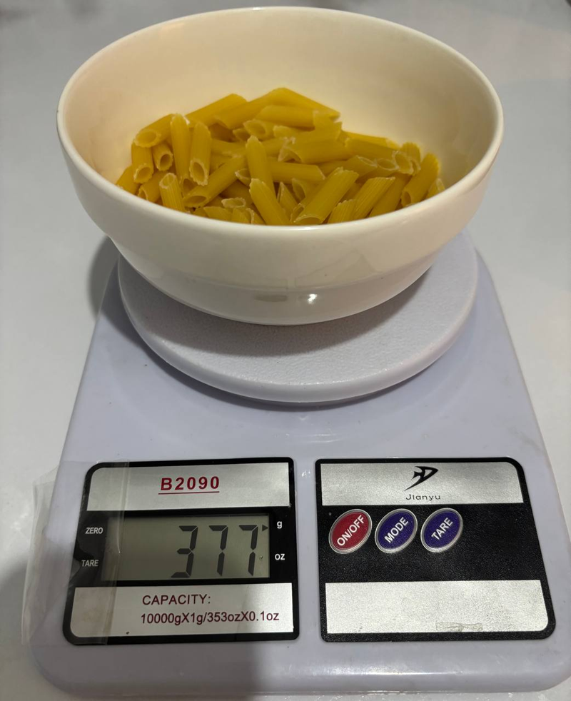 Birinchi rasmda 6,990 so’mli makaron. Ikkinchisi esa 12,990 so’mli makaron. Dastlab ularni ikkisini ham bir xil hajmda 100 grammdan o’lchab oldik. Keyin har birini 500 gramm qaynab turgan suvga soldik. Va ikkisini ham bir xil haroratda 15 minutdan qaynatishga qo’ydik.